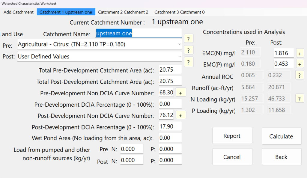 For sites with multiple catchments, additional catchment worksheets may be created using the “Add Catchment” button located in the top left-hand corner of the worksheet.