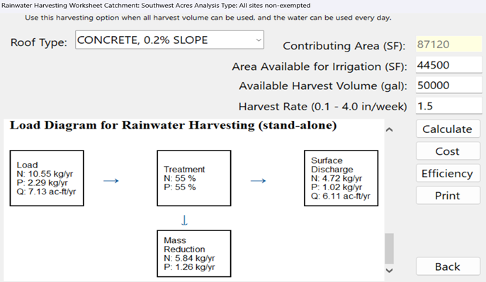 This differs from stormwater harvesting BMPs, which remove water from the cistern twice per week.