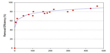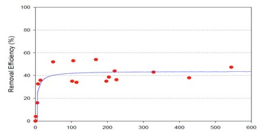 As shown in the figures below, the treatment effectiveness of a wet pond is directly related to the annual residence time that storm water runoff occupies within the wet pond before discharge. The longer the residence time, the more opportunity the various pollutant load reduction mechanisms within the wet pond system have to function.