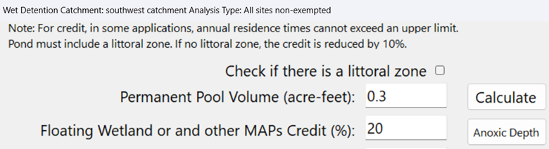 • Floating wetland credit = 20% applied to the remaining untreated portion